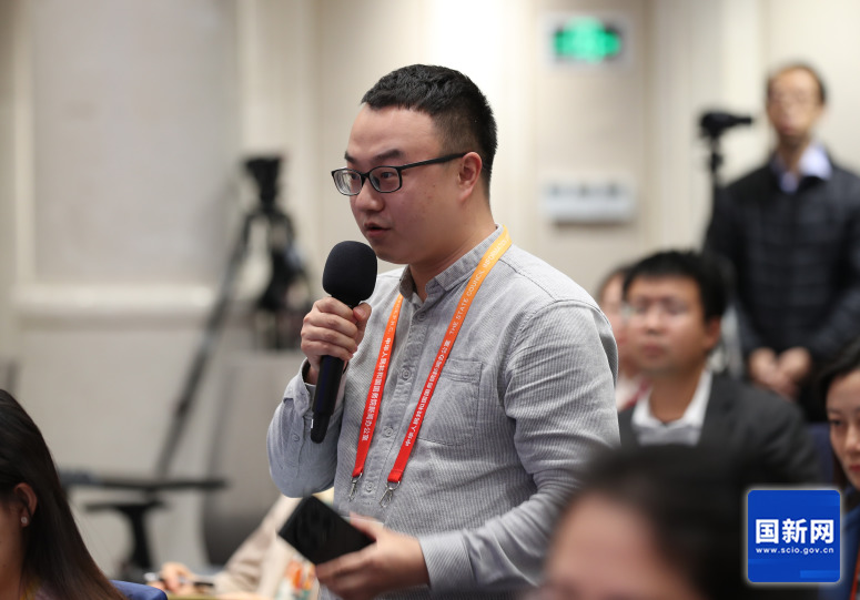 界面新闻记者提问(刘健 摄)